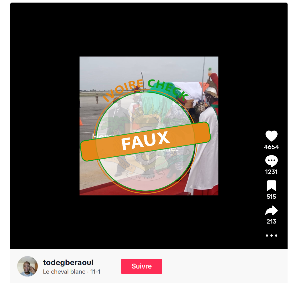IvoireCheck un post sur Tiktok prétendant montrer un hommage funèbre du Président ivoirien et l’a trouvé FAUX.